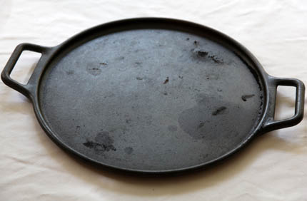 2. When I’m making a single bread or pizza, I prefer using lighter, pre-seasoned cast-iron. The Lodge Cast-Iron 14-Inch Pizza Pan is virtually crack-proof, unlike thin ceramic stones (not the Old Stone above). Cast-iron has different properties so it can preheat in 20 minutes and still create a crispy, caramel-colored bottom crust (your oven’s result may vary, so experiment to be sure the short preheat is working for you). It can even be preheated, at least partially, on the stovetop! Because iron conducts heat fast, it also cools off quicker.
