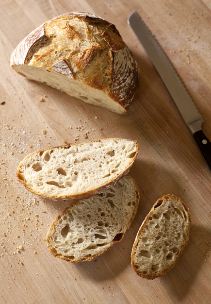 Allow the loaf to cool on a rack until it is room temperature. If you cut into a loaf before it is cooled you will have a tough crust and a gummy interior. It is hard to wait, but you will be happy you did! Make sure you have a sharp serrated bread knife that will not crush the bread as you cut.