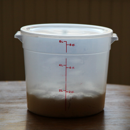 We have you mix up your dough in a nice big 6-Quart Food-Storage Container, because over the course of 2 hours it will grow to nearly touch the lid. Some folks have asked exactly what that should look like, so I mixed up a batch of each Master recipe from ABin5 and HBin5, then sat back and watched them rise. I promise this is more fun than watching paint dry, it will show you exactly what your dough should look like and I’ve set it to a little Johnny Cash (Ooops, apparently I can’t do that. Had to switch to something with a little less….copyright).