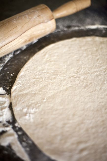Roll out 1 pound of the dough into an 1/8-inch-thick circle.