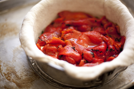 Next came a layer of roasted red peppers, because I always add a layer of roasted red peppers!