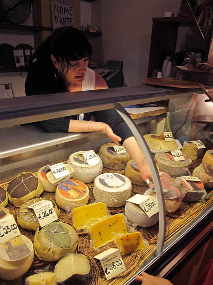 First David took me shopping in San Gimignano for all of the makings of my pizza party. The local cheese shop, where I couldn’t resist buying a slice of all the locally produced sheep cheese was our first stop.