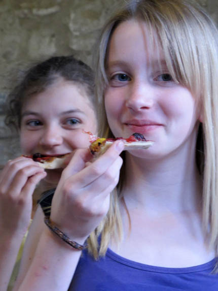 Best of all, baking home made pizzas makes you incredibly popular. These two adorable girls were also on holiday in Tuscany and joined us as soon as they smelled pizza. In German/English they told me how much they loved the pizza. That makes me very happy.