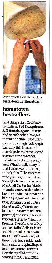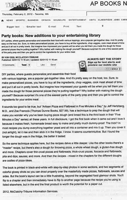 We are insanely flattered. Epicurious.com, which is the food website of Conde Nast, publisher of Bon Appetit and the late, lamented Gourmet, has named The New Artisan Bread in Five Minutes a Day as one of the 53 greatest cookbooks of all time. That’s our book in their picture, right in the middle of some very exhalted company. Bakers like Dorie Greenspan, Julia Child, Peter Reinhart. We’re hyperventilating. Thanks for the shout-out, Epicurious: