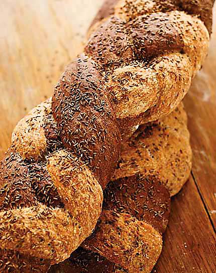 Braided Black-and-White Pumpernickel and Rye Loaf