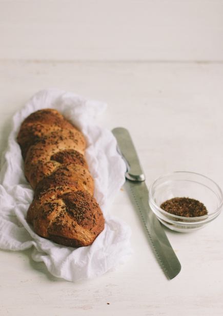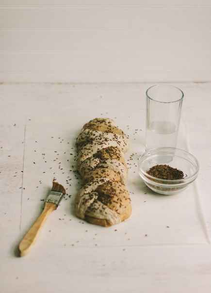 7. Just before baking, use a pastry brush to paint the loaf with water, and then sprinkle with caraway seeds.
