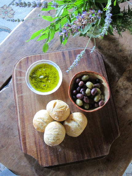 Jeff and I are always wanting to convey how simple and forgiving these recipes are, not to mention delicious. During my stay in Tuscany this summer I rented an apartment just outside of San Gimignano. The foundation of the house was built around 500AD, but thankfully the kitchen had been updated in this century. It seemed a must for me to bake bread during my week there. I went to the store and bought flour, salt and yeast. Got back to the apartment and realized I had none of the equipment I usually count on in my kitchen. There were no measuring cups or spoons, no pizza stone, no peel and the oven was in celsius, not fahrenheit. No matter, I still dumped everything in a bowl, mixed it up, hoped for the best and ended up with a gorgeous dough. Over the next few days I baked rolls in the house and pizzas in a wood fired oven outside my door.