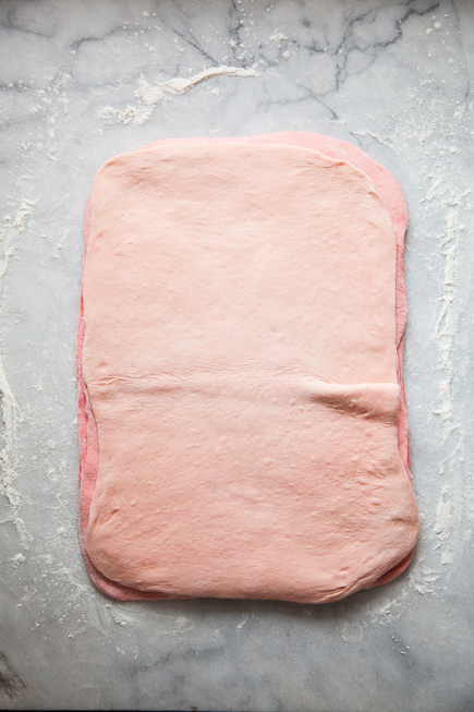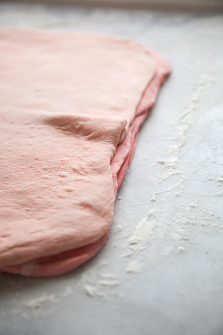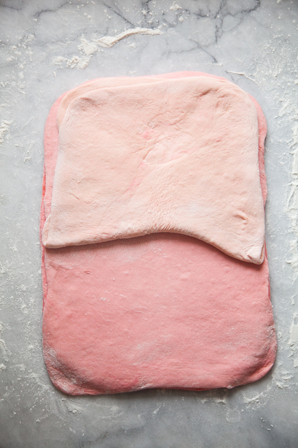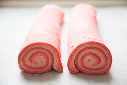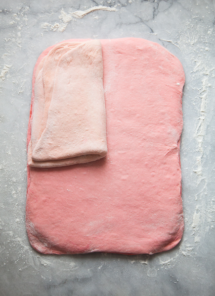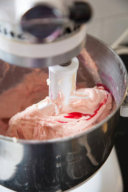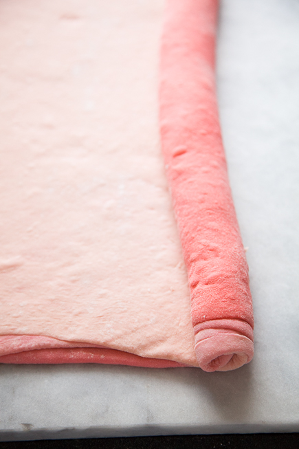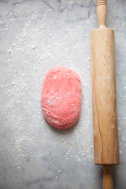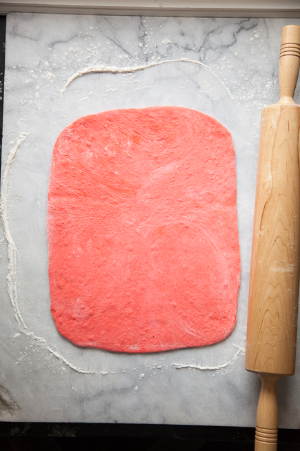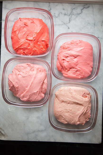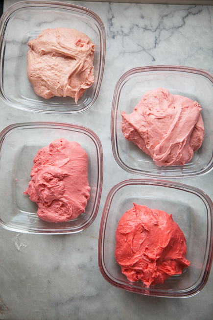 You’ll end up with four bowls of dough, ranging from light pink to dark red.