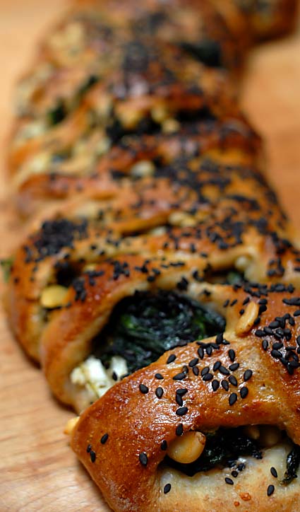 It’s not really braided. Here’s another, with savory fillings from an earlier post; same idea but with Spinach, Feta, and Pine Nuts.